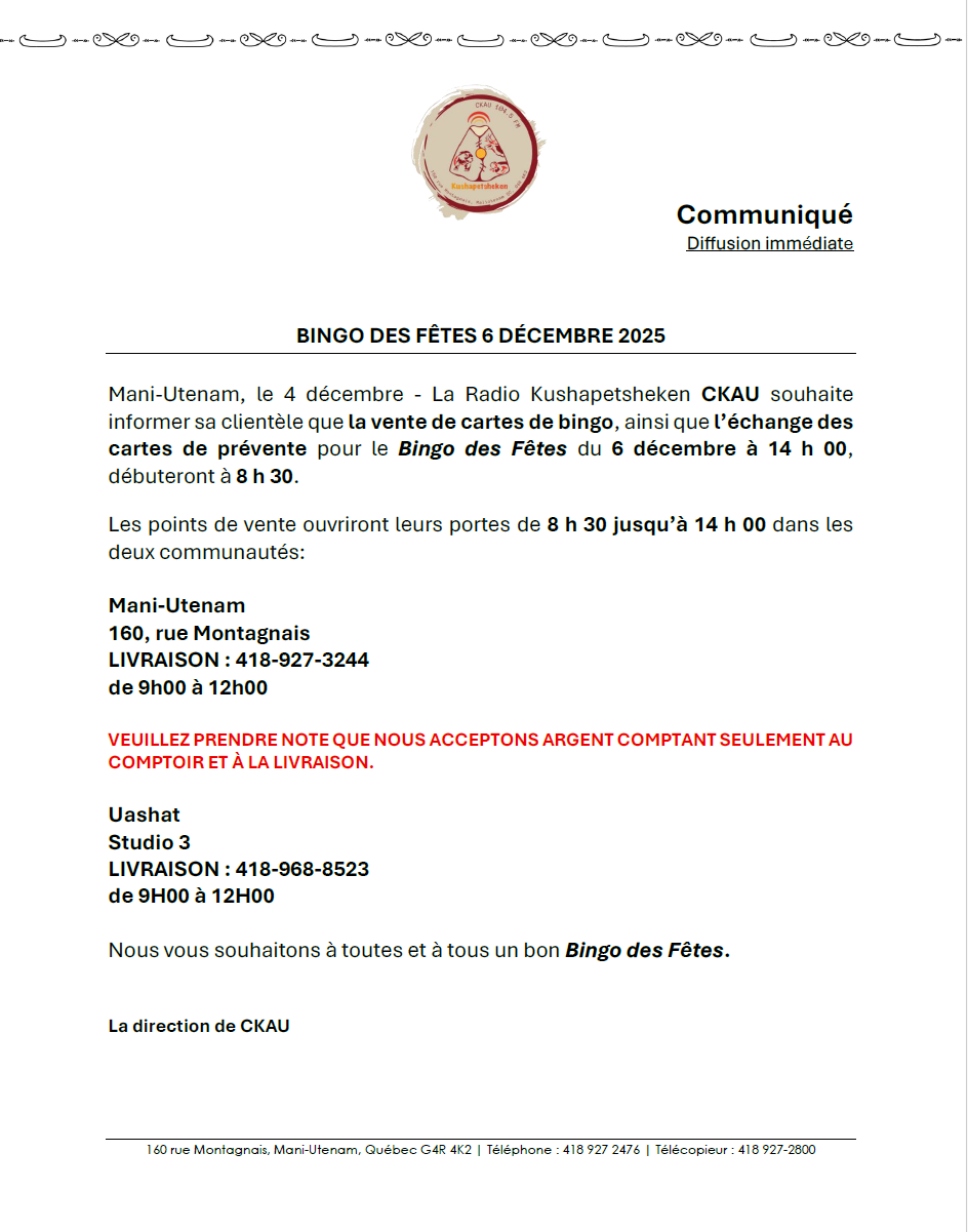 En raison du festival Innu Nikamu, la radio Kushapetsheken CKAU fera